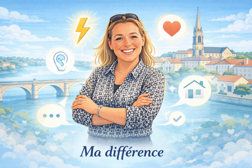 Je travaille principalement sur le secteur libournais, un territoire que je connais bien puisque j’habite moi-même à Libourne, dans le quartier de l’Épinette. Cette proximité est importante pour moi, car elle me permet d’être réactive, présente sur le terrain, et au plus près des réalités du marché local.